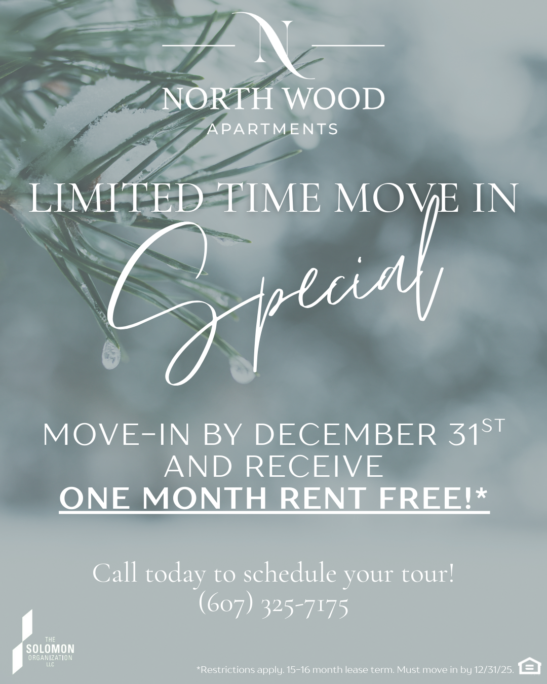 Move-in by December 31st and receive ONE MONTH RENT FREE!*